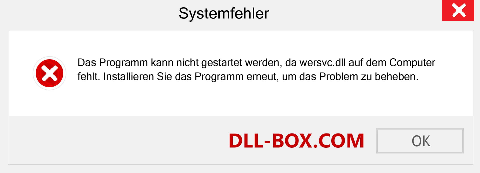 1. Das Programm kann nicht gestartet werden, da wersvc.dll auf Ihrem Computer fehlt. Versuchen Sie, das Programm neu zu installieren, um dieses Problem zu beheben.